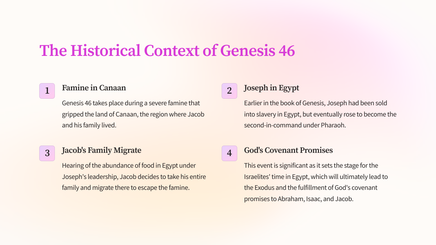 In this section, we'll examine the biblical account of Jacob's journey to Egypt, as recounted in the book of Genesis. We'll uncover the significant events and divine guidance that led to this pivotal moment in the lives of God's chosen people.