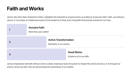James reminds us that true faith is not merely intellectual assent but a living and active force that transforms our lives. He emphasizes the importance of love, patience, humility, and perseverance as essential components of a genuine faith.