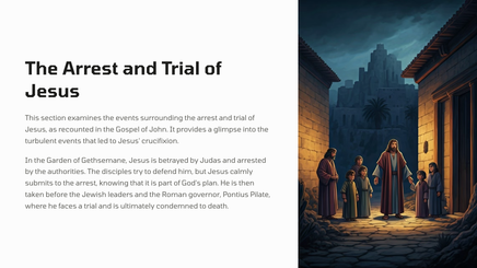 This section examines the events surrounding the arrest and trial of Jesus, as recounted in the Gospel of John. It provides a glimpse into the turbulent events that led to Jesus' crucifixion.