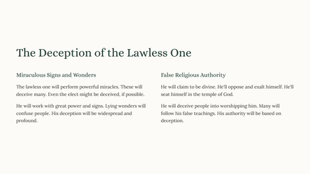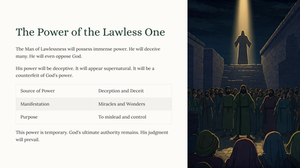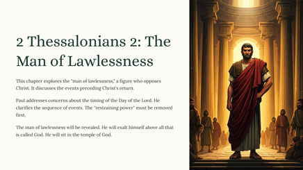 This chapter explores the "man of lawlessness," a figure who opposes Christ. It discusses the events preceding Christ's return.
