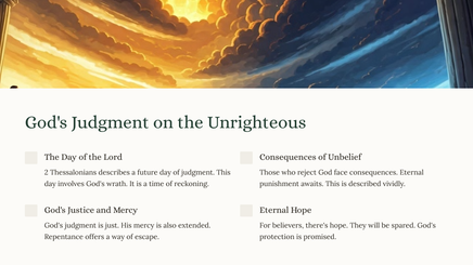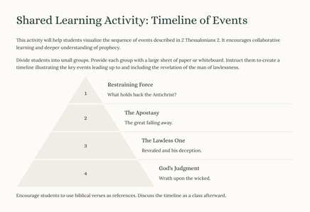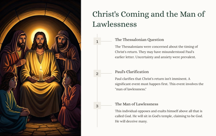 Paul addresses concerns about the timing of the Day of the Lord. He clarifies the sequence of events. The "restraining power" must be removed first.