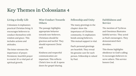 This section explores practical instructions for daily Christian living, as outlined in Colossians 4.