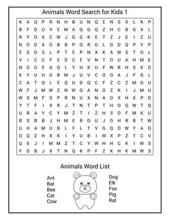 Animals Word Search For Kids 1