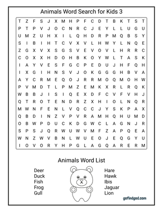 Animals Word Search For Kids 3