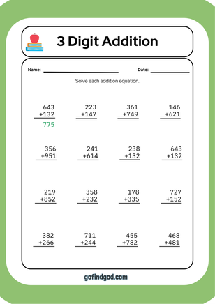 Math Activity Worksheets - 3 Digit Addition