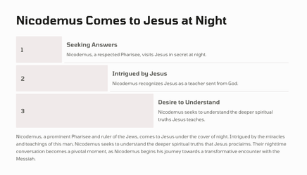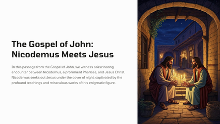 In this passage from the Gospel of John, we witness a fascinating encounter between Nicodemus, a prominent Pharisee, and Jesus Christ. Nicodemus seeks out Jesus under the cover of night, captivated by the profound teachings and miraculous works of this enigmatic figure.