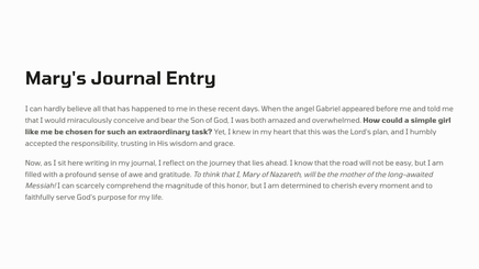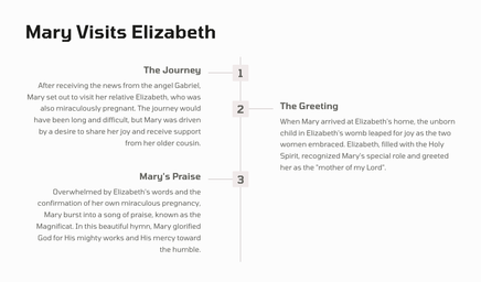 Filled with wonder and trepidation, Mary journeyed to visit her cousin Elizabeth, who was also miraculously pregnant. Upon their meeting, the unborn John the Baptist leaped in Elizabeth's womb, and she proclaimed Mary as the mother of her Lord.