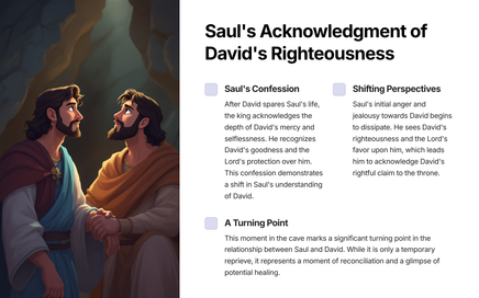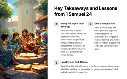 Gain valuable insights into the biblical story of King Saul and David with 1 Samuel 24. Follow along as Saul spares David's life, providing a powerful lesson on forgiveness and mercy. Experience the wisdom and expertise of this expertly written book.