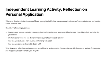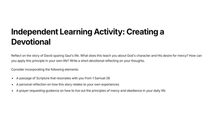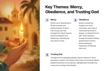 Discover the powerful lesson of mercy and obedience through the story of 1 Samuel 26. Written in a concise and informative style, this product combines biblical teachings with real-world application. Learn how to incorporate mercy and obedience into your daily life with this expertly crafted resource.