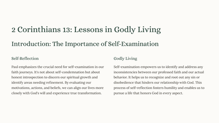 In 2 Corinthians 13, the apostle Paul gives powerful instructions for living a life that reflects the character of God. He emphasizes the importance of self-examination and the consequences of neglecting God's word.