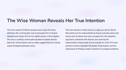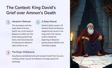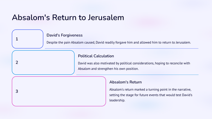Experience the captivating biblical story of Absalom's return to Jerusalem in 2 Samuel 14. Gain insight into the political and familial dynamics as Absalom seeks to reclaim his rightful place in the kingdom. This account offers a unique perspective that will leave you with a deeper understanding of this pivotal moment in history.