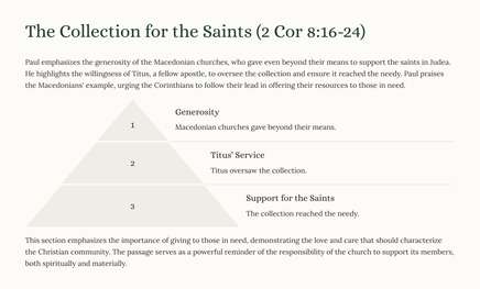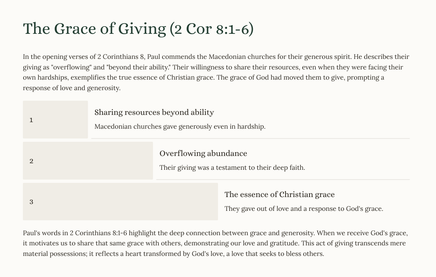 The text showcases the Corinthians' willingness to give, but also emphasizes the importance of genuine, heartfelt generosity. As we explore this chapter together, we will learn about the motivations behind giving, and how we can cultivate a heart that overflows with generosity.