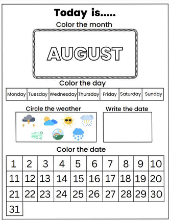 • Color the day and date – Develop fine motor skills while learning calendar sequencing.