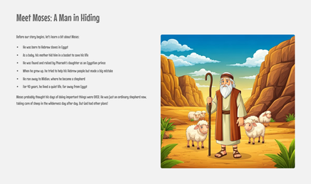 Launch your Grade 5 Bible curriculum with the powerful story of Moses and the burning bush. In this inspiring lesson, students explore how God calls ordinary people to do extraordinary things—despite their doubts, fears, or feelings of unworthiness.