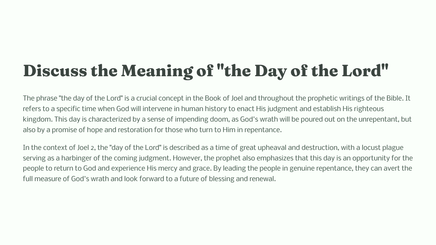 The book of Joel in the Bible provides powerful lessons about repentance and God's mercy. In chapter 2, the prophet Joel delivers a message from God, urging the people to return to Him with all their heart.