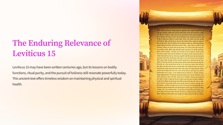 Delve into the biblical laws and teachings surrounding the various bodily discharges described in Leviticus 15. Gain a deeper understanding of the spiritual and practical significance of these ancient guidelines.