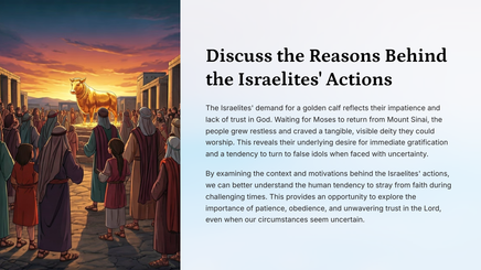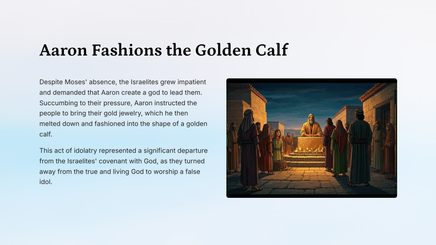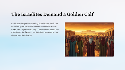 In the book of Exodus, we learn about the Israelites' momentary lapse of faith and their creation of a golden calf, which serves as a cautionary tale of the dangers of idolatry and the importance of remaining steadfast in one's devotion to God.
