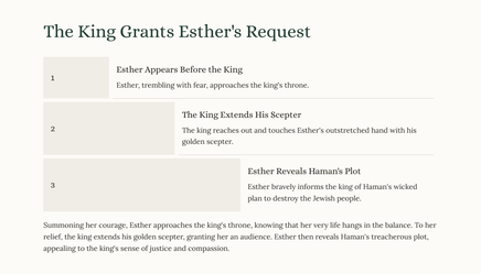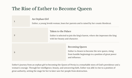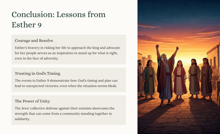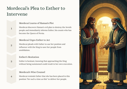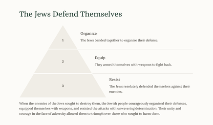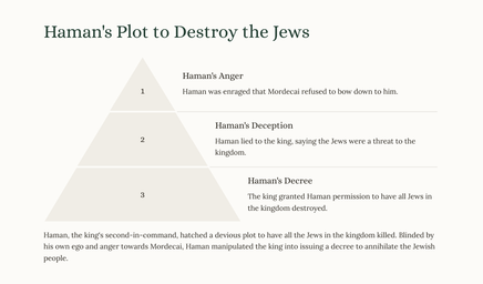 The Book of Esther recounts a dramatic story of how the Jewish people were saved from annihilation in the Persian Empire. Through the courage and quick thinking of Queen Esther, a palace plot to destroy the Jews was uncovered and thwarted.