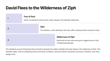 This product details the biblical story of David's escape from King Saul in 1 Samuel 23. Gain insight into this legendary event and the historical significance it holds. Explore the ultimate escape of David from King Saul and its impact on the future of Israel's monarchy.