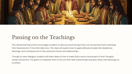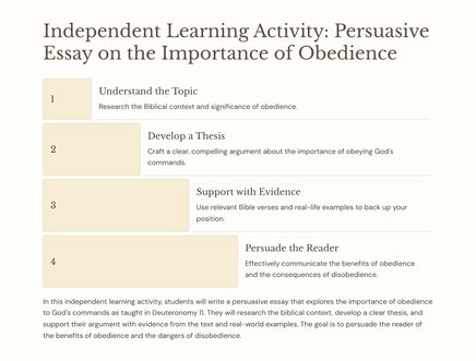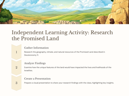 Delve into the profound teachings of Deuteronomy 11, as we explore the timeless wisdom and guidance for living a righteous life. Through interactive activities and thoughtful discussions, students will deepen their understanding of this pivotal chapter in the Bible.