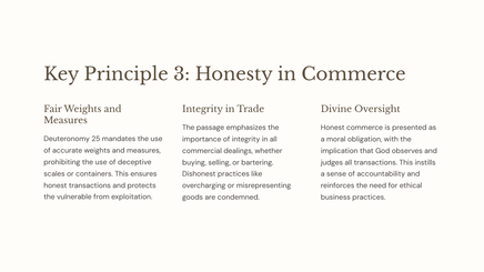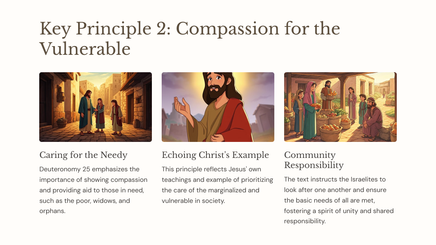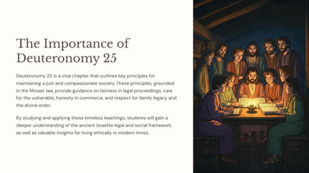 Deuteronomy 25 outlines ethical guidelines and laws that were meant to foster a fair and equitable society in ancient Israel. These principles addressed issues of justice, compassion, and community responsibility.