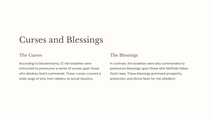 In this pivotal chapter of Deuteronomy, Moses lays out a solemn covenant between the Israelites and their God, establishing a framework for their relationship and the blessings and curses that will come with obedience or disobedience.