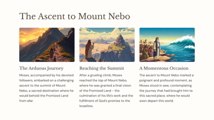 Explore the extraordinary journey of Moses, the prophet who led the Israelites out of Egypt and received the Ten Commandments from God on Mount Sinai. Discover the profound impact of his life and teachings on the Judeo-Christian tradition.