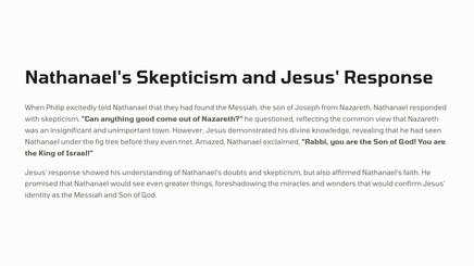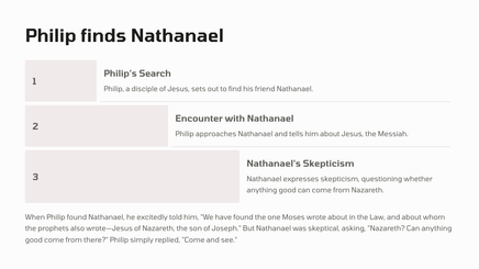 In this passage, we witness the beginnings of Jesus' ministry as he calls his first disciples. Through their interactions, we see how Jesus powerfully reveals his identity and invites others to follow him.