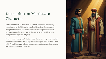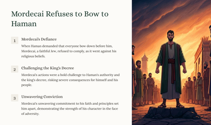 Esther 3 recounts a pivotal moment when Mordecai, a Jew, refuses to bow down to Haman, the king's official. This sets off a chain of events that tests Esther's courage and obedience to God as she navigates the royal court to save her people.