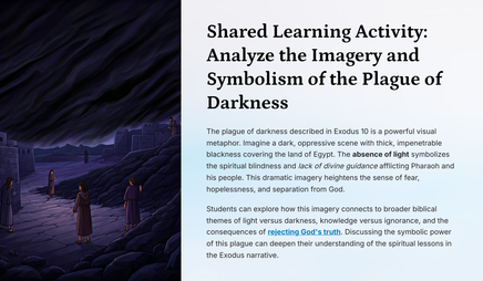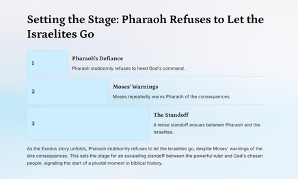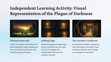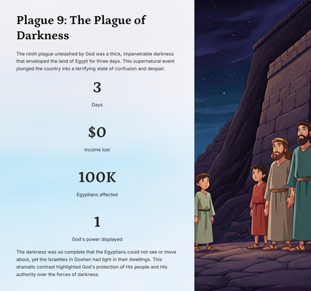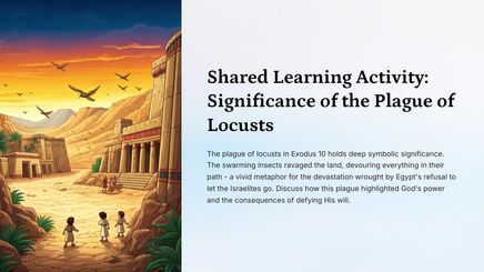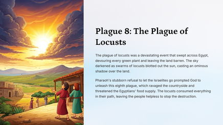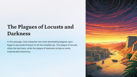 In this passage, God unleashes two more devastating plagues upon Egypt to persuade Pharaoh to let the Israelites go. The plague of locusts strips the land bare, while the plague of darkness brings an eerie, impenetrable blackness.