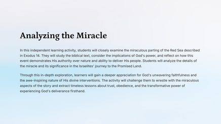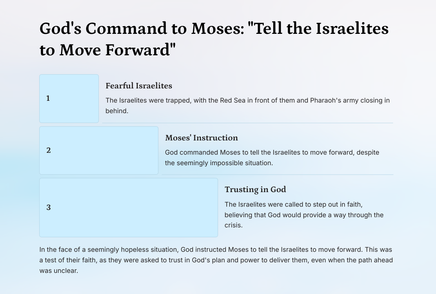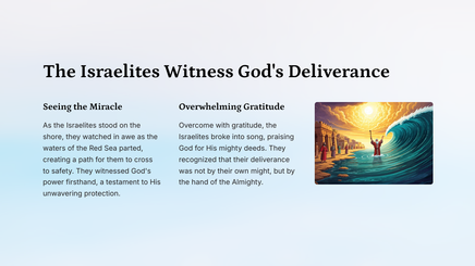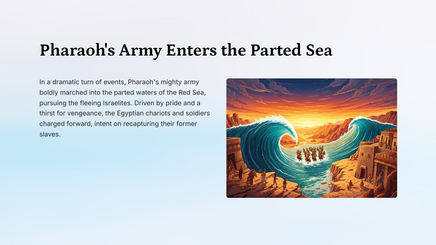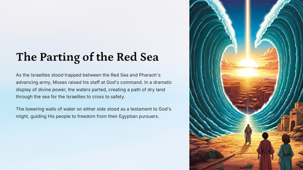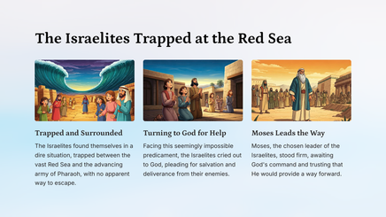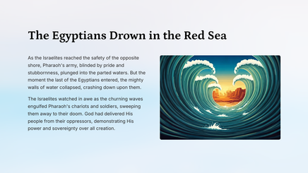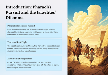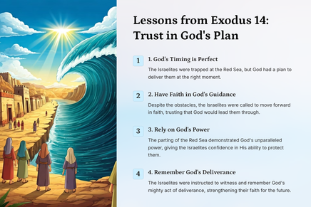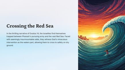 In the thrilling narrative of Exodus 14, the Israelites find themselves trapped between Pharaoh's pursuing army and the vast Red Sea. Faced with seemingly insurmountable odds, they witness God's miraculous intervention as the waters part, allowing them to cross to safety on dry ground.