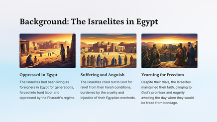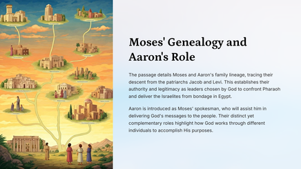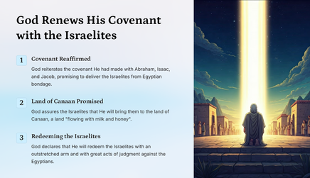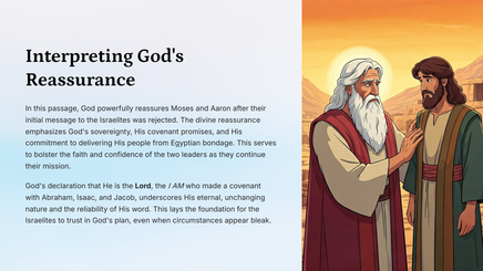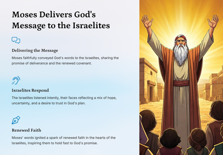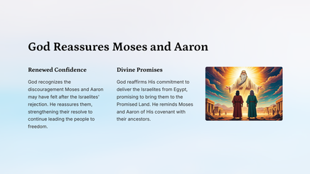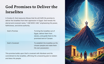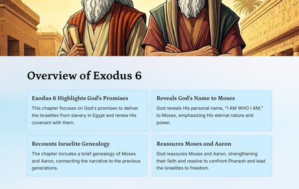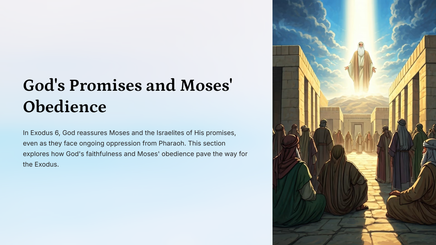 In Exodus 6, God reassures Moses and the Israelites of His promises, even as they face ongoing oppression from Pharaoh. This section explores how God's faithfulness and Moses' obedience pave the way for the Exodus.