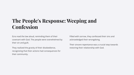 In response to God’s call to repentance, Ezra reads the law to the people. The people are deeply convicted by their sin and make a solemn promise to separate themselves from the foreign wives.