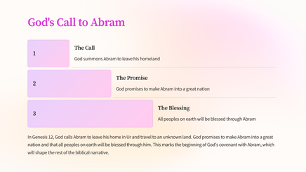 Discover the captivating journey of Abram, as he follows God's call from his homeland of Ur to the promised land of Canaan, where the Almighty establishes a divine covenant that will shape the future of humanity.