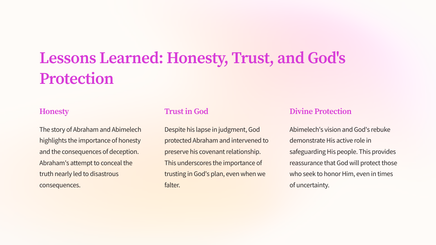 In this passage, we learn about the encounter between Abraham and Abimelech, the king of Gerar. Despite the tensions that arise, the story ultimately highlights God's providence and protection over His people.