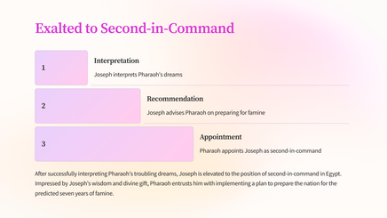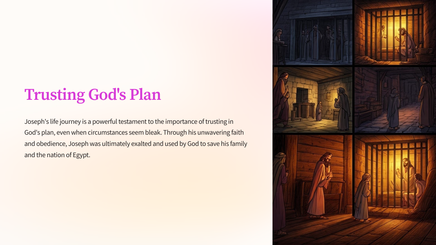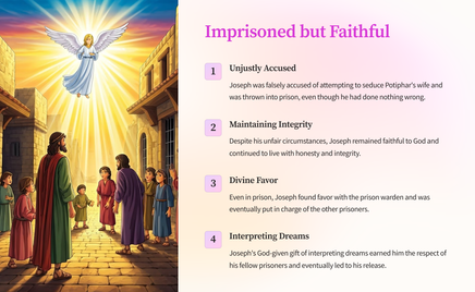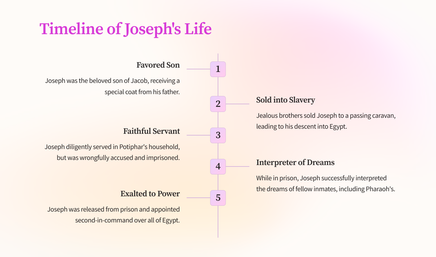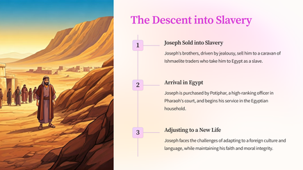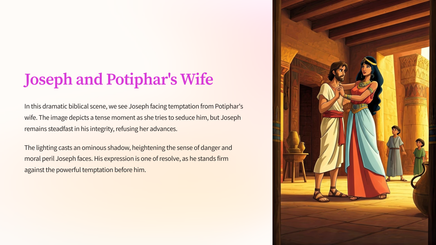 Explore the remarkable journey of Joseph, from being sold into slavery to rising to a position of power and influence in Egypt. Witness his unwavering faith and the divine providence that guided him through times of hardship and triumph.