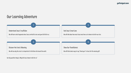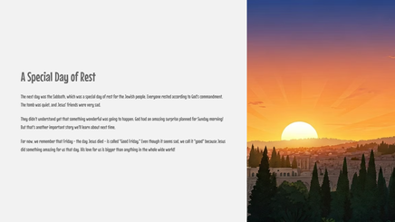 Celebrate the hope and joy of Easter in this powerful final lesson of the term, as students explore the truth of Jesus’ Resurrection and Ascension. This child-friendly Bible lesson helps students understand how Jesus overcame death and promised to always be with us. Through storytelling, art, music, and reflection, children will develop a deeper understanding of God’s love and eternal plan of salvation.