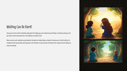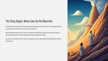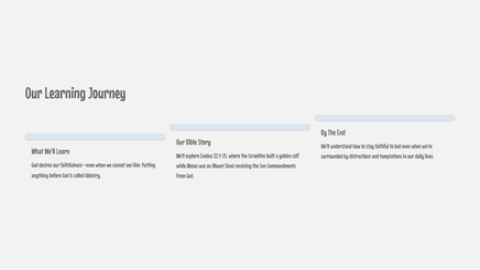 In this powerful lesson, students dive into the story of the golden calf to understand the danger of idolatry and the importance of staying faithful to God. With relatable connections to modern life, students reflect on distractions that pull them away from God and learn how to put Him first. This week encourages critical thinking, honest reflection, and spiritual growth.