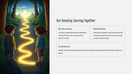As the Israelites complete the Tabernacle, God's presence comes to dwell among them in a powerful way. This final lesson in the “Following God’s Call” series explores the faithfulness of God, the importance of preparation, and how God’s guidance continues today. Students reflect on God's leadership and how they can make space for His presence in their daily lives.