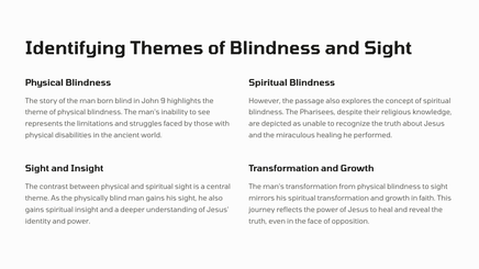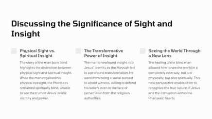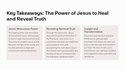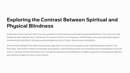 As Jesus and his disciples walked, they encountered a man who had been blind since birth. This miraculous encounter would reveal the power of God and challenge the religious leaders' understanding of sin and healing.