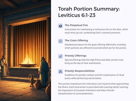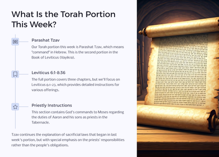 • Torah portion references and summaries