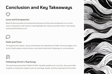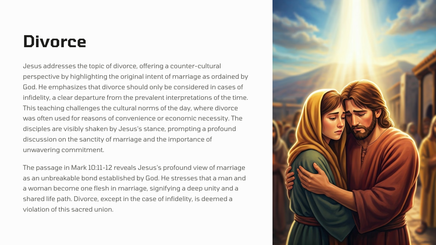 Mark 10 is an important chapter in the New Testament that details Jesus' teaching on marriage, divorce, and children. It's a great opportunity to teach students about the importance of following Jesus' teachings, especially those about loving one another.