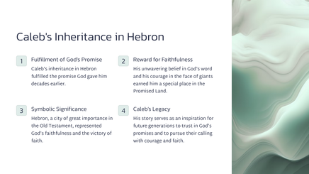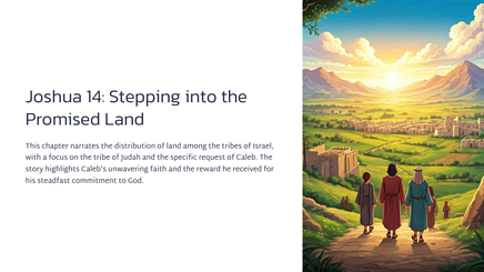 This chapter narrates the distribution of land among the tribes of Israel, with a focus on the tribe of Judah and the specific request of Caleb. The story highlights Caleb's unwavering faith and the reward he received for his steadfast commitment to God.